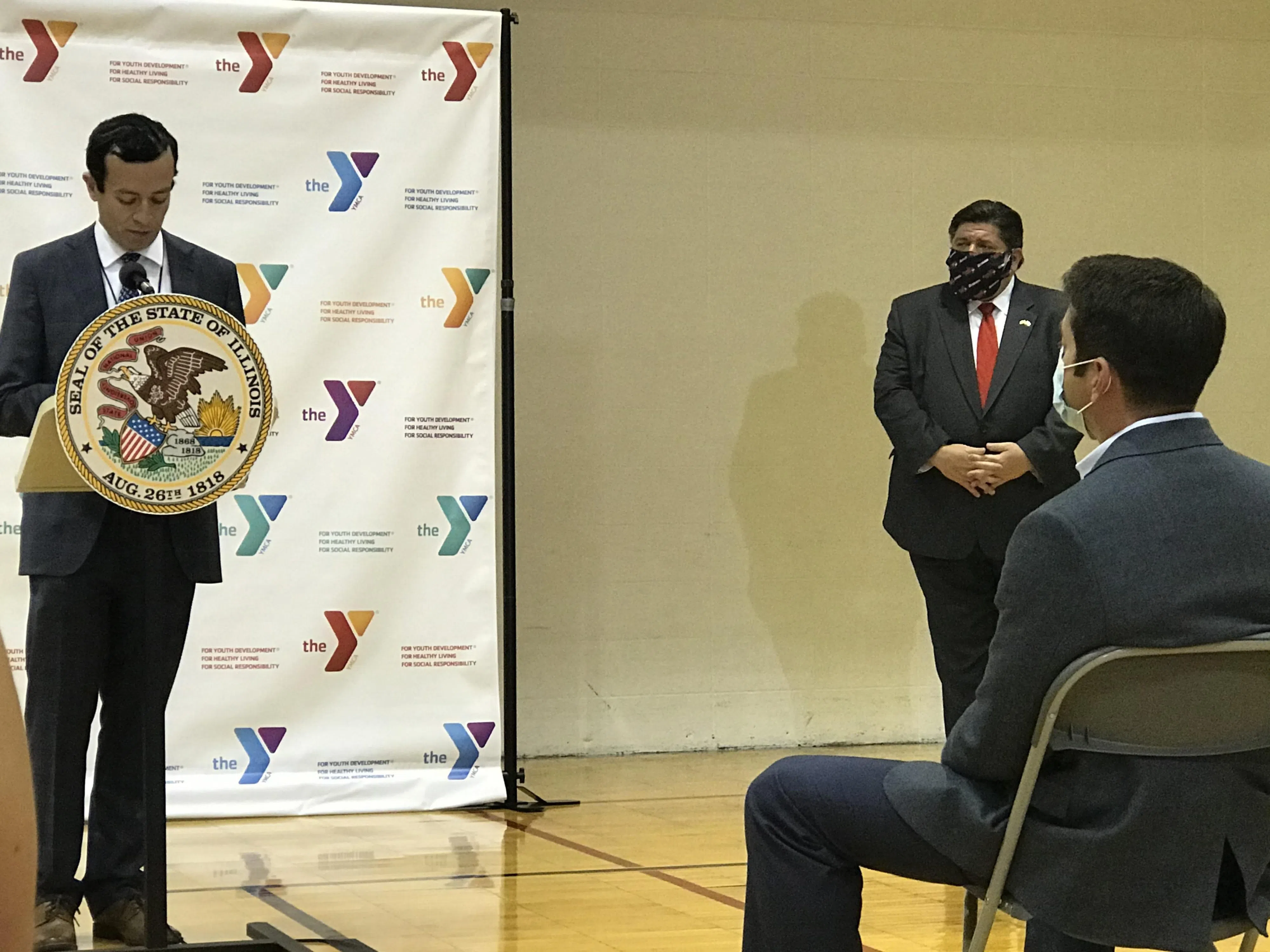 BLOOMINGTON – The governor and local officials gathered at the Bloomington-Normal YMCA Wednesday afternoon to announce the first round of grant money for small businesses impacted by the COVID-19 pandemic.