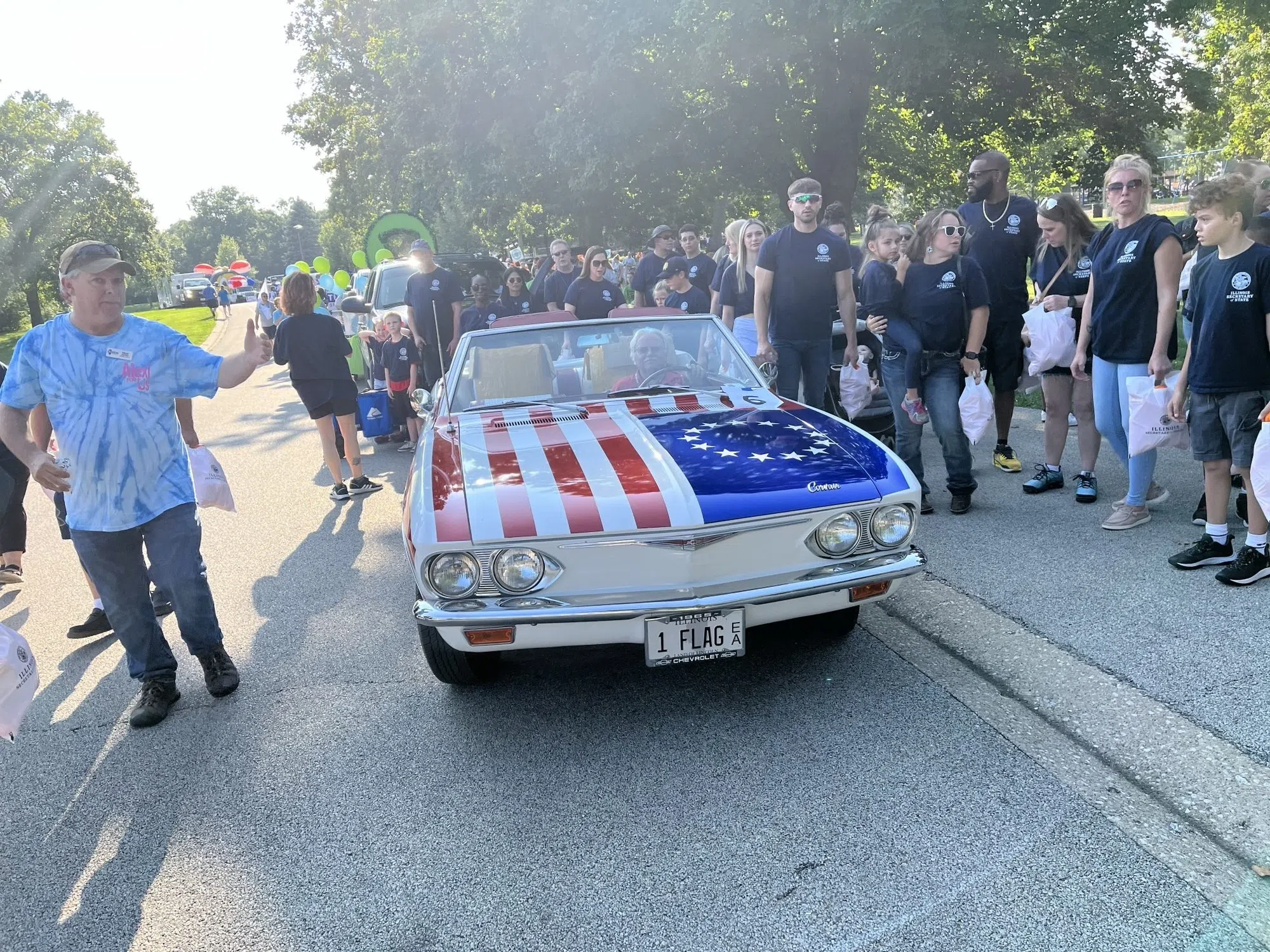 As he prepared to march in the parade, Gov. JB Pritzker was surrounded by people in bright blue JB T-shirts. But he said he’s not running for anything. “These are mementoes of a lost time, a year ago, when we crushed our opponent!!”
