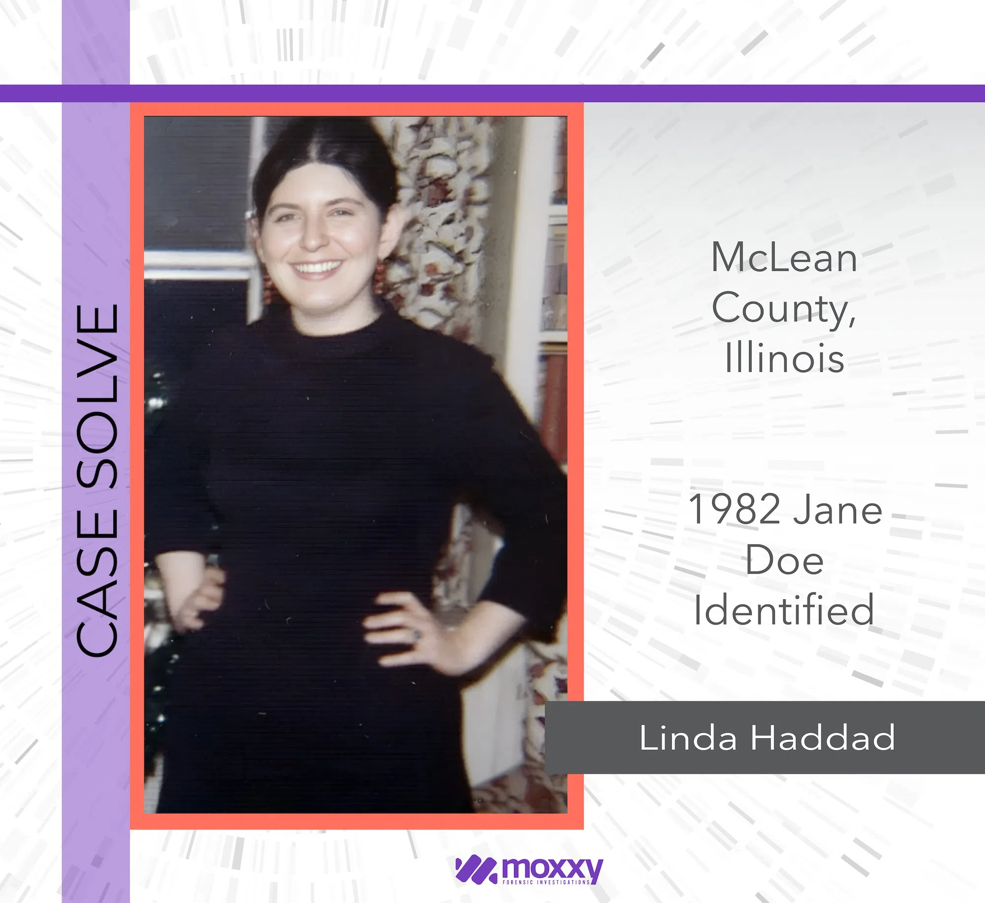 Seven of Moxxy’s investigative genetic genealogists conducted a month-long investigation before developing a viable lead that ultimately connected Haddad’s DNA profile with relatives who were able to assist in confirming her identity.